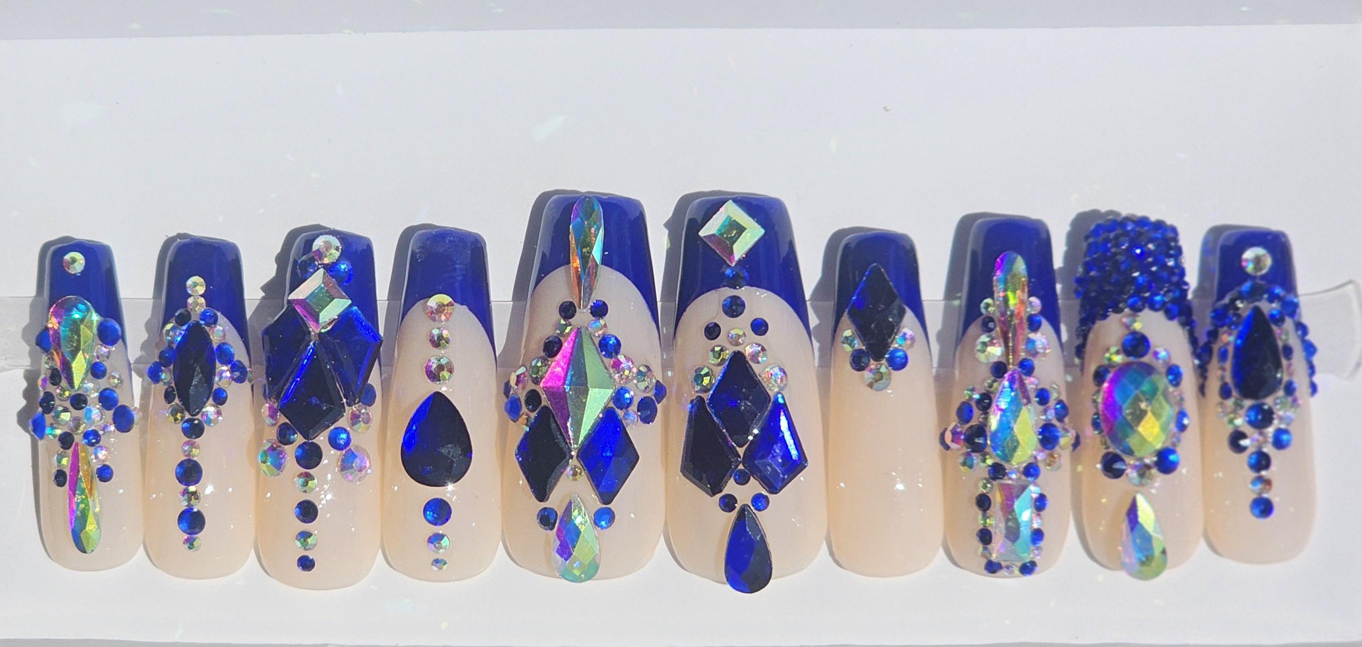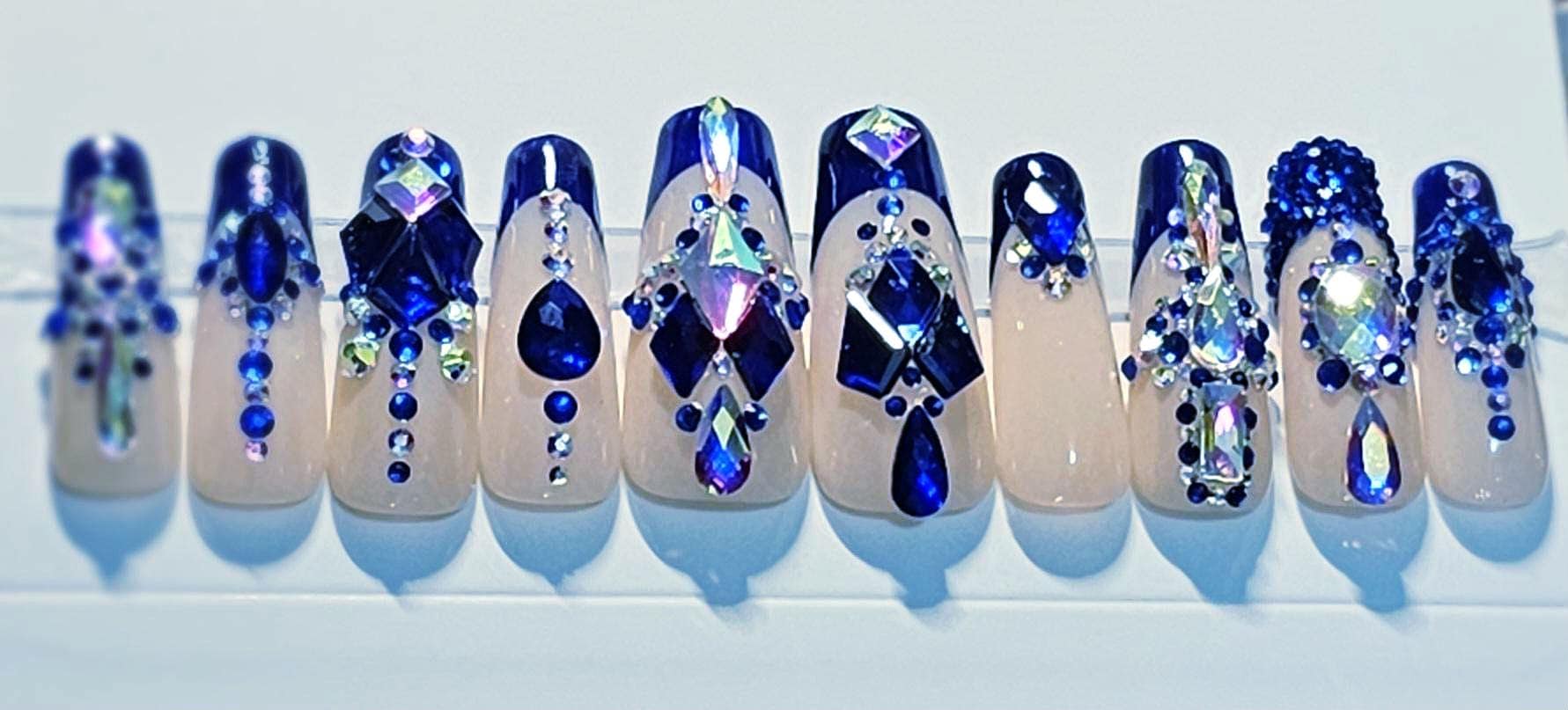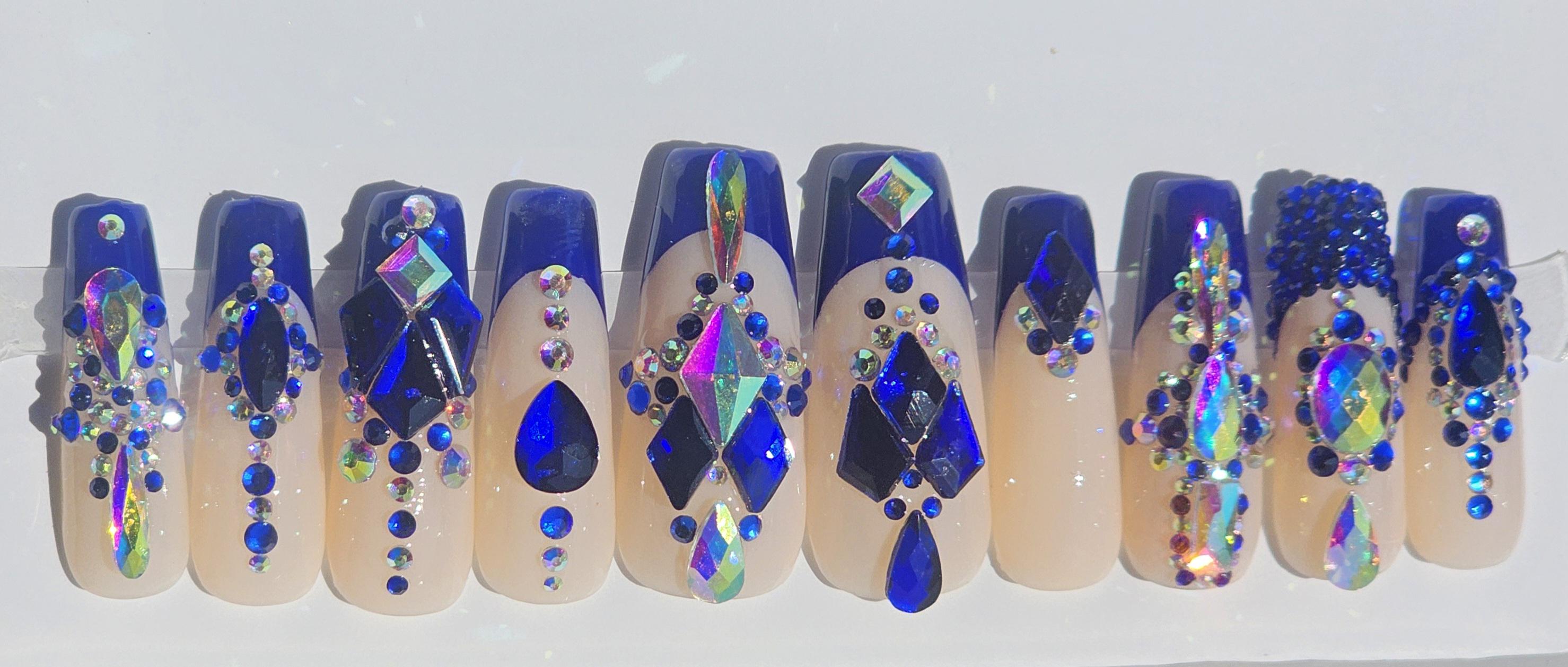 Royal Blue French tip (apex) with lots of bling!
