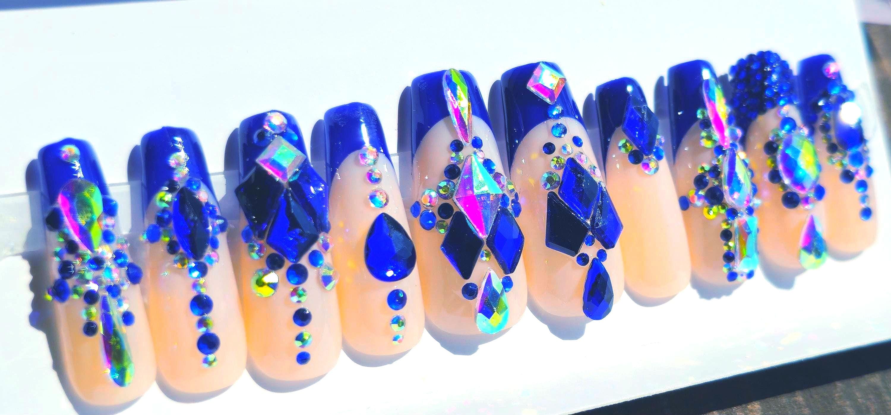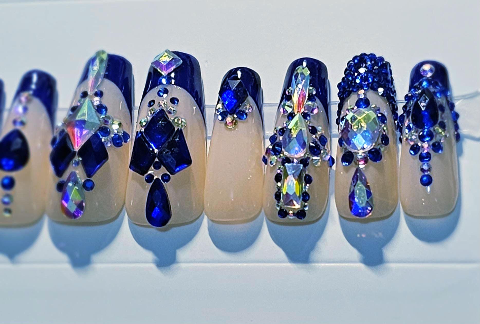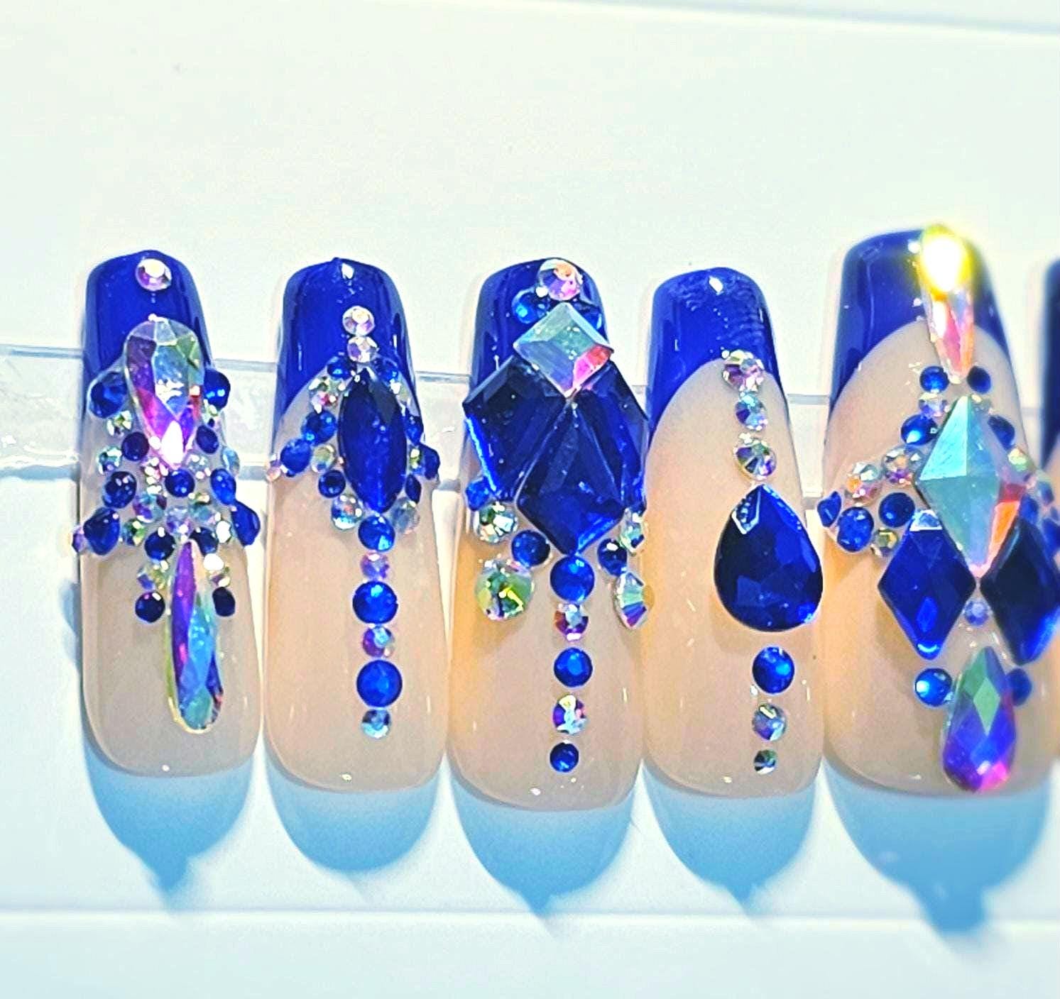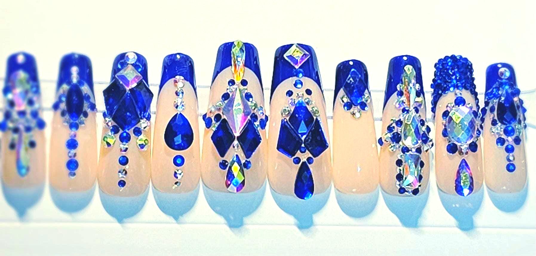 Royal Blue French tip (apex) with lots of bling!