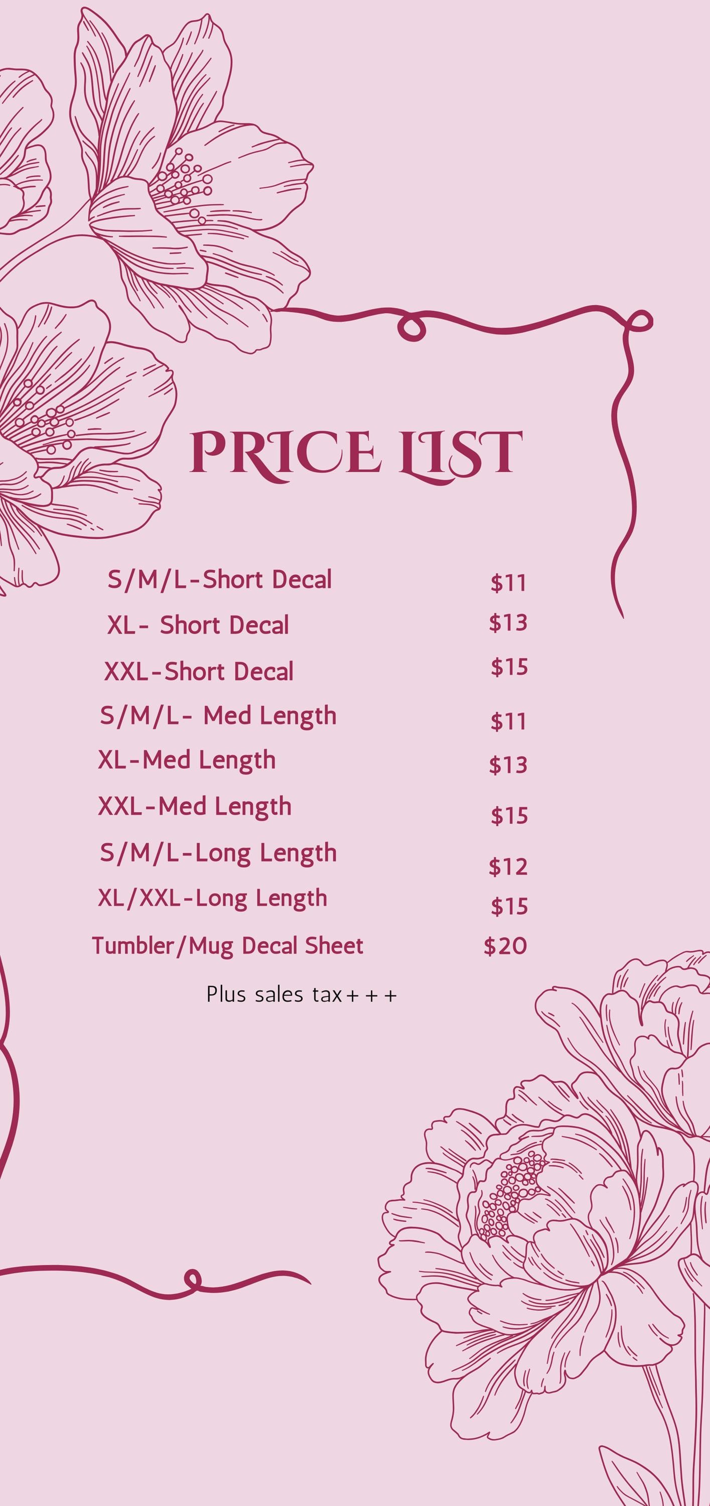 I absolutely love my custom decals and the customer service. She made sure I was involved in every step and even sent me some bonus decals!! Please shop with her, you will not be disappointed!!