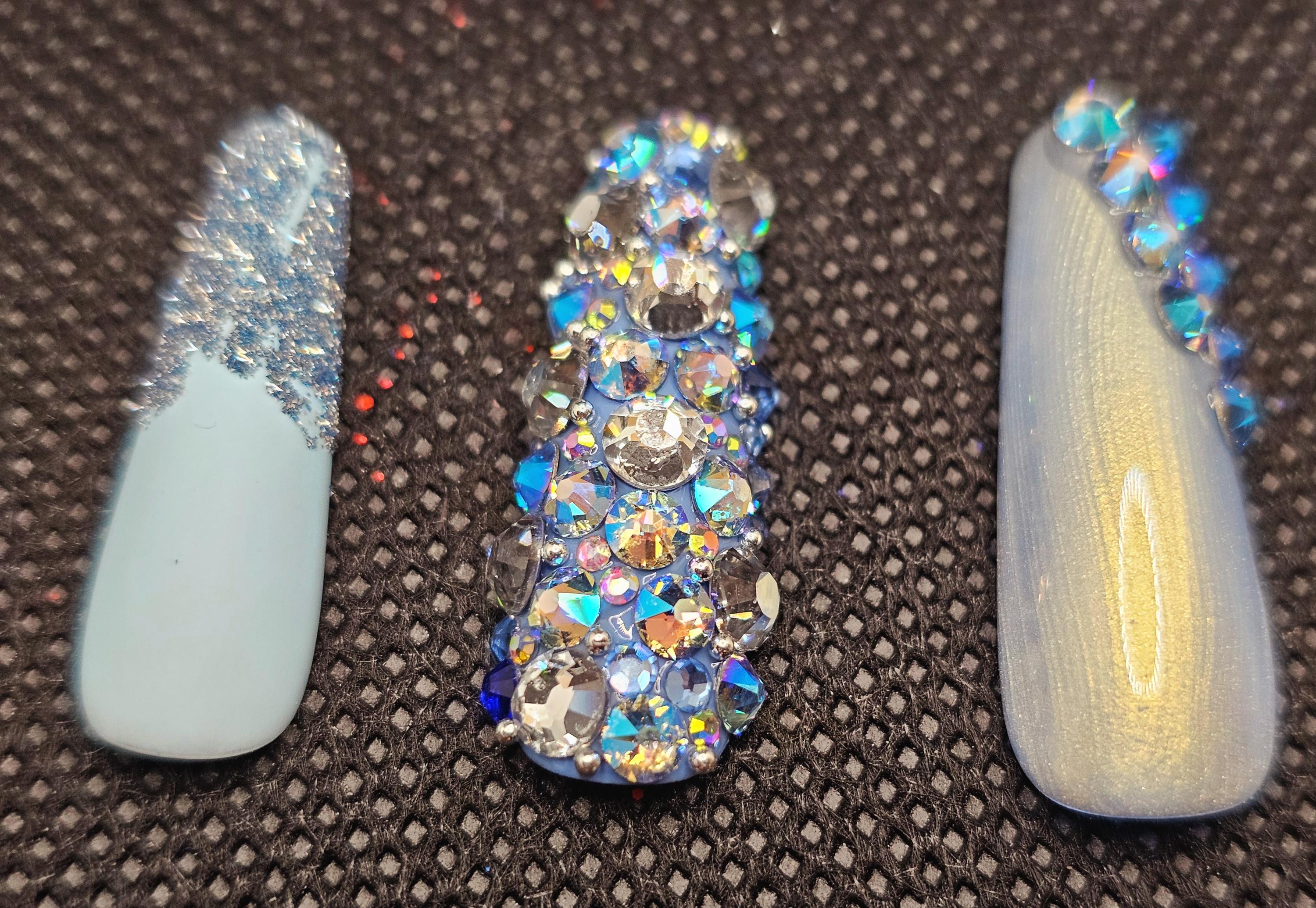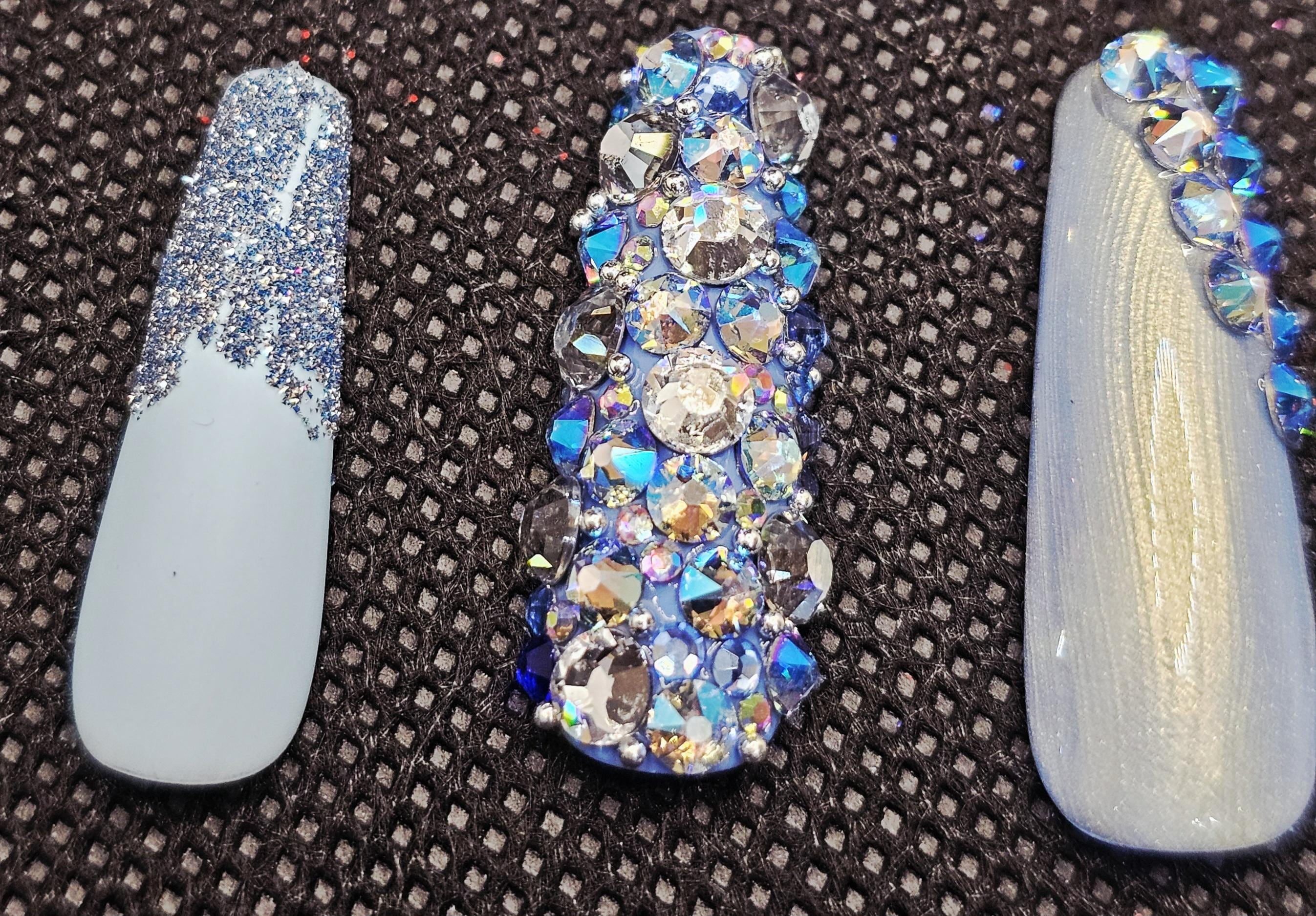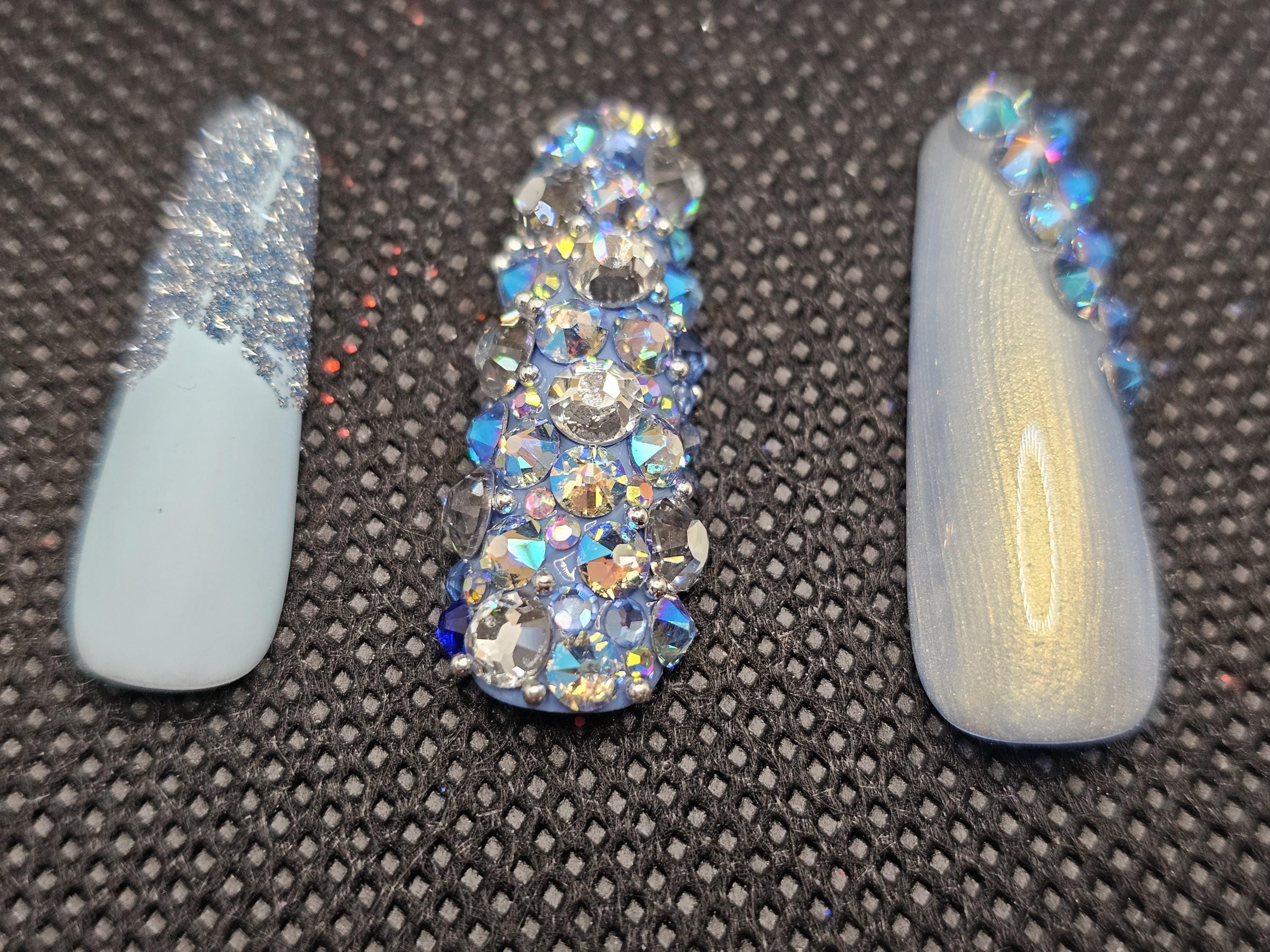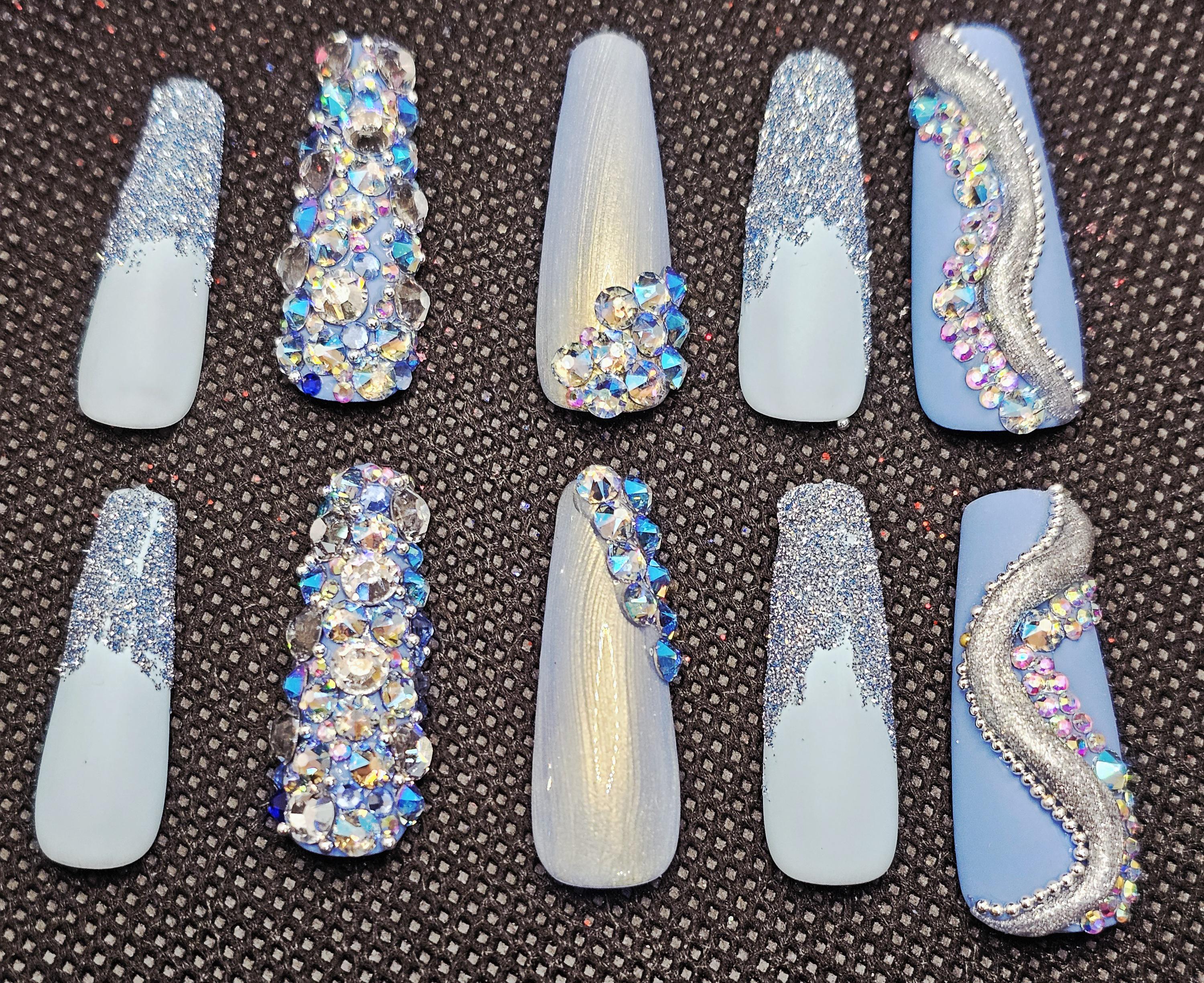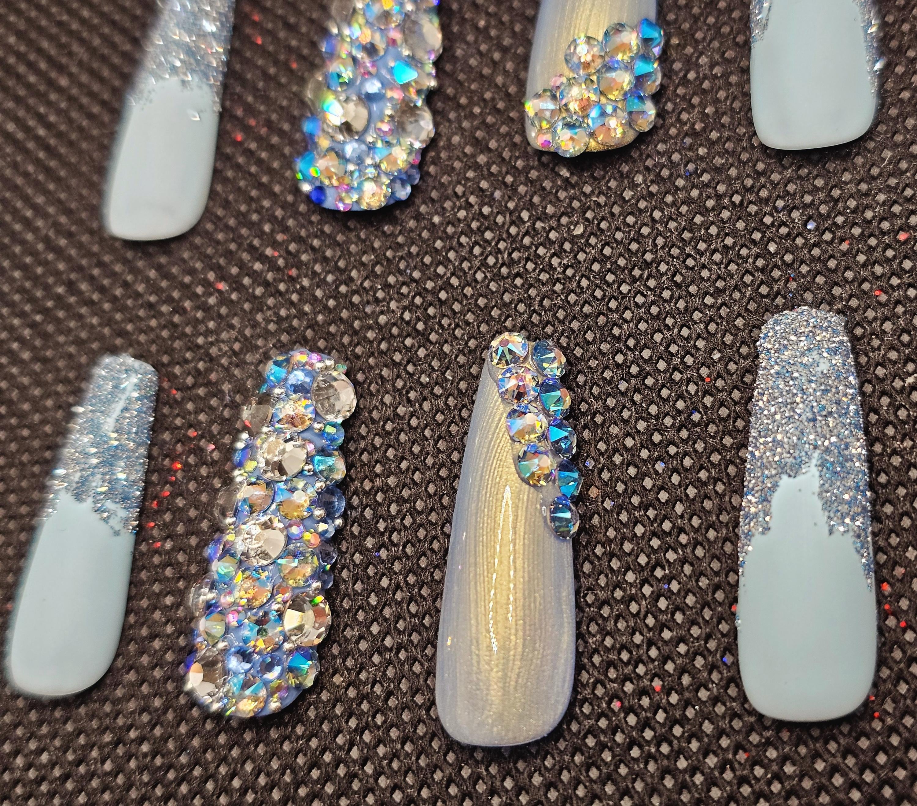 Blue bling spring nails medium length coffin